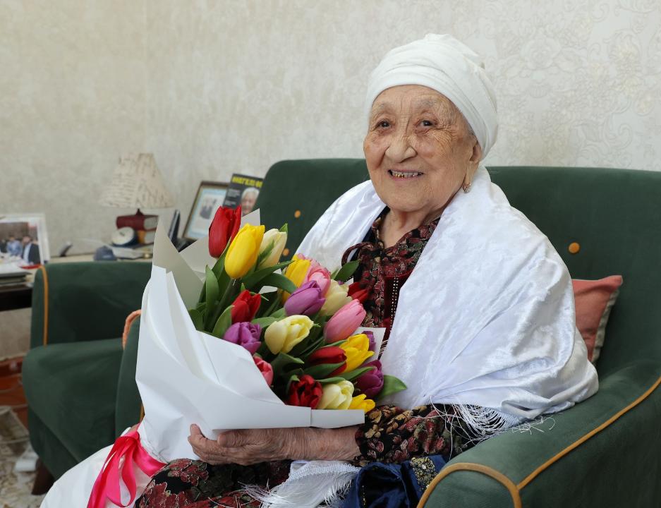 – Бір ғасырға жуық ғұмыр кешіп, тағылымы мол өмір жолын қалыптастырдыңыз. Саналы ғұмырыңызды білім мен тәрбиеге арнап, ұзақ жылдар ұстаздық еттіңіз. Халқымыз «Ұстаз – ұлы есім» дейді. Сіздің өмір жолыңыз осы сөздің шынайы мәнін айқын көрсетеді.