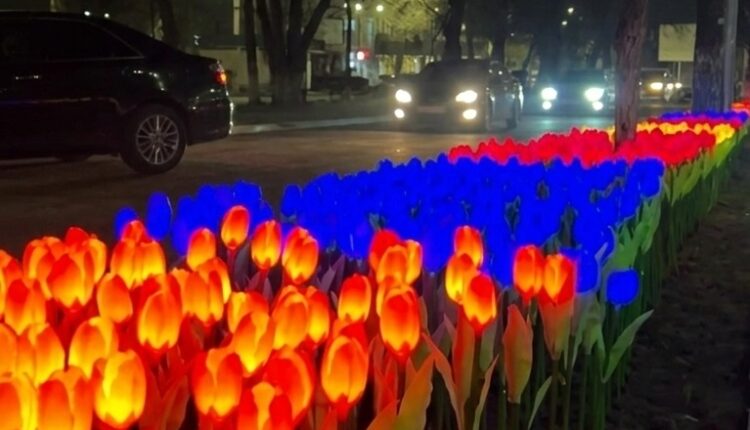 Таразда қаланың көркін арттыру және тұрғындар мен қонақтар үшін тартымды орта қалыптастыру мақсатында түнде жарық шашатын 10 мың дана жасанды қызғалдақ орнатылды.
