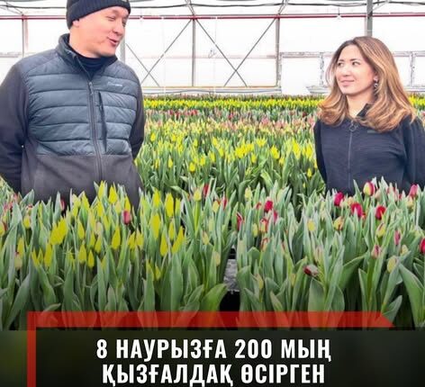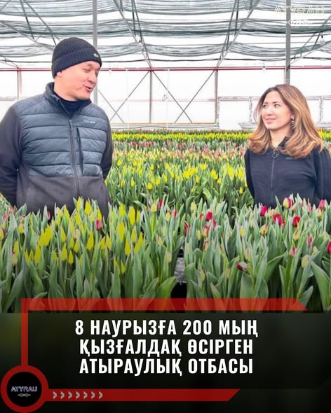 Атыраулық жас жұбайлар — Айгерім Даулетиярова мен Айдар Жұмиян — Халықаралық әйелдер күніне орай жылыжайда 200 мың қызғалдақ өсірді. Бұл олар үшін гүл өсірудегі алғашқы дербес тәжірибе.