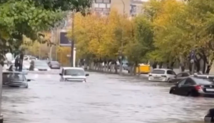 Толассыз жауған жауын салдарынан қала орталығындағы көшелерді су басып, көліктер мен қоғамдық көліктер суда қалған. Азаматтар көшеде тізеге дейін жеткен суды кешіп жүруге мәжбүр.