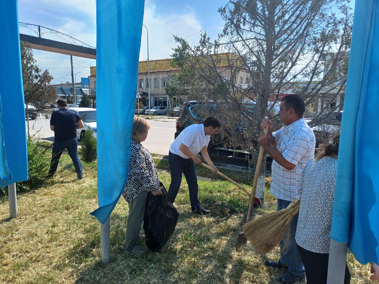 Тазалық жұмыстарына аудан әкімдігінің бөлім және мекеме қызметкерлері, белсенді жастар мен ауыл тұрғындары қатысты.