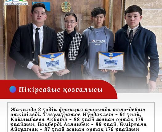 Осыған орай, пікірсайысшылар арасында өткен іріктеуде үздік деп танылған 2 фракция аталған финалдық теле-дебат ойынына жолдама алды.