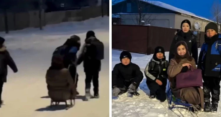 Бастауыш сынып мұғалімі Бибінұр Жақсылықова Instagram парақшасында оқушыларының өзін шанамен үйіне дейін апарып салуды ұсынған видеосын жариялады. Мұғалімнің «ұят емес пе?» деген сұрағына олар «жоқ» деп жауап берген.
