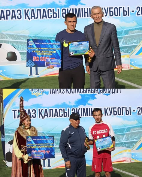 “Тараз қаласы әкімінің Кубогы — 2025” Жамбыл жаңалықтары By shanyraq08 On Окт 27, 2025 0 Бөлісу “Достық” стадионында әуесқой футбол командалары арасындағы “Тараз қаласы әкімінің Кубогы — 2025” турнирінің марапаттау рәсімі өтті. Салтанатты шараға Тараз қаласының әкімі Бақытжан Орынбеков арнайы қатысып, жеңімпаздар мен жүлдегерлерге марапаттарды табыстады. Тартысты өткен турнирде барлығы 13 команда бақ сынады. Жарыс қорытындысы бойынша 1-орынды “Байзақ”, 2-орынды “Жаңа Жамбыл фосфор зауыты”, 3-орынды “Ұшқын” командалары иеленді. Сонымен қатар “Үздік қақпашы”, “Үздік қорғаушы”, “Үздік жартылай қорғаушы”, “Үздік шабуылшы” және “Үздік ойыншы” номинацияларының иегерлері анықталды. Тараз қаласының әкімдігі 0 Бөлісу