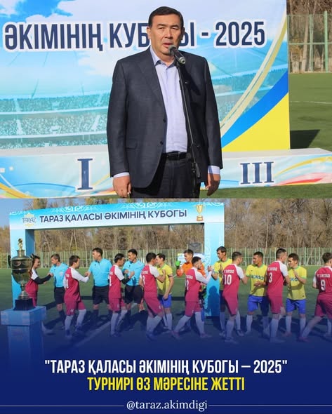 “Тараз қаласы әкімінің Кубогы — 2025” Жамбыл жаңалықтары By shanyraq08 On Окт 27, 2025 0 Бөлісу “Достық” стадионында әуесқой футбол командалары арасындағы “Тараз қаласы әкімінің Кубогы — 2025” турнирінің марапаттау рәсімі өтті. Салтанатты шараға Тараз қаласының әкімі Бақытжан Орынбеков арнайы қатысып, жеңімпаздар мен жүлдегерлерге марапаттарды табыстады. Тартысты өткен турнирде барлығы 13 команда бақ сынады. Жарыс қорытындысы бойынша 1-орынды “Байзақ”, 2-орынды “Жаңа Жамбыл фосфор зауыты”, 3-орынды “Ұшқын” командалары иеленді. Сонымен қатар “Үздік қақпашы”, “Үздік қорғаушы”, “Үздік жартылай қорғаушы”, “Үздік шабуылшы” және “Үздік ойыншы” номинацияларының иегерлері анықталды. Тараз қаласының әкімдігі 0 Бөлісу
