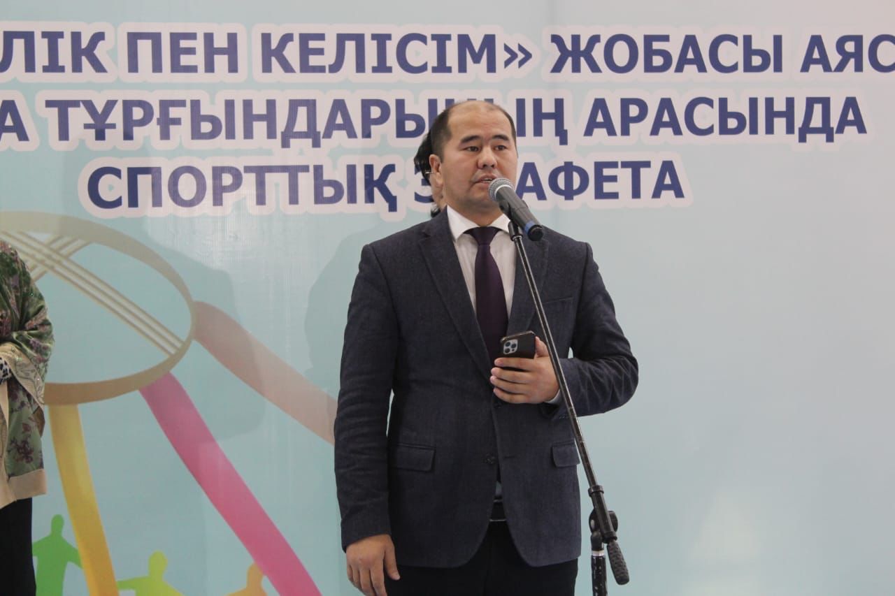 Жақсылық Үшкемпіров атындағы “Тараз-Арена” спорт сарайында Тараз қаласы әкімдігі мен облыстық ішкі саясат басқармасы “Қоғамдық келісім” КММ-нің ұйымдастыруымен “Бейбітшілік пен келісім” жобасы аясында қала тұрғындары арасында спорттық эстафета өткізілді.