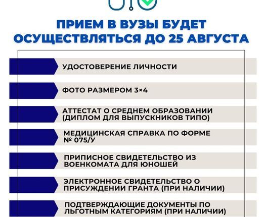 Уважаемые друзья! бастыБАСТЫ ЖАҢАЛЫҚ By shanyraq08 On Авг 7, 2023 0 Бөлісу Прием документов в вузы будет осуществляться до 25 августа включительно. Список документов, которые нужно сдать в вузы: удостоверение личности, фото размером 3×4, аттестат о среднем образовании или диплом для выпускников организаций ТиПО, медицинская справка по форме № 075/у, приписное свидетельство из военкомата для юношей, электронное свидетельство о присуждении образовательного гранта (при наличии), подтверждающие документы по льготным категориям (при наличии). Электронное свидетельство о присуждении образовательного гранта скачиваете на сайте grant.testcenter.kz . По дополнительным вопросам можете обратиться в приемные комиссии вузов. Удачи! Сарысу ауданы әкімдігі 0 Бөлісу