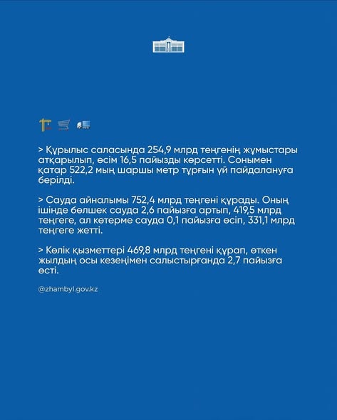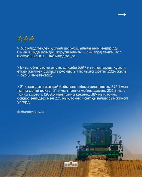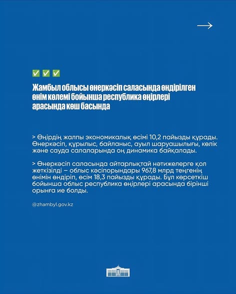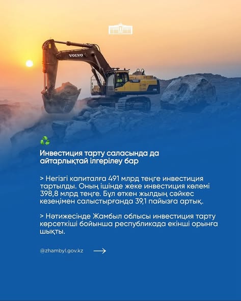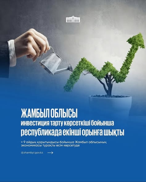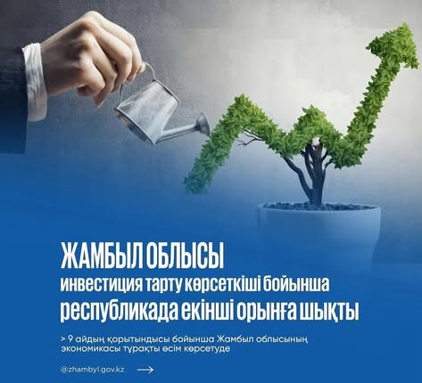 Жамбыл облысының 2025 жылғы қаңтар-қыркүйек айларындағы әлеуметтік-экономикалық даму қорытындылары: АймақАлтын бесік By shanyraq08 On Окт 31, 2025 0 Бөлісу Жамбыл облысы өнеркәсіп саласында өндірілген өнім көлемі бойынша республика өңірлері арасында көш басында Жамбыл облысы инвестиция тарту көрсеткіші бойынша республикада екінші орынға шықты #инвестиция #казахстан #zhambyl 0 Бөлісу